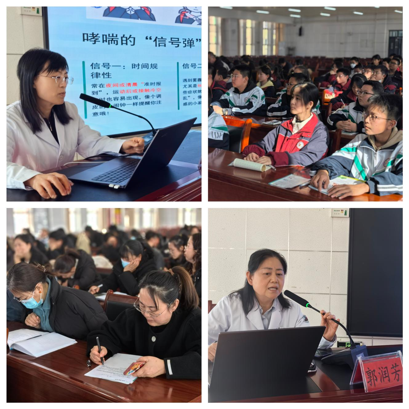 本次讲座精准对接校园实际需求,由我院两位临床经验丰富的科室主任进行授课,她们凭借深厚的专业知识和大量的临床实例,将复杂的医学知识转化为生动易懂的语言,重点围绕“甲流、哮喘和癫痫的识别与应对要点、哮喘发作的正确急救步骤、遇到癫痫发作时‘该做’和‘不该做’的事”等内容进行详细的讲解,师生们听得专注,记得认真。“做自己健康的第一责任人”不仅是口号,更成为大家的行动共识,这也是我院健康科普“六进”活动的切实举措——把专业的医疗知识送到师生身边,为成长筑起一道健康防线。