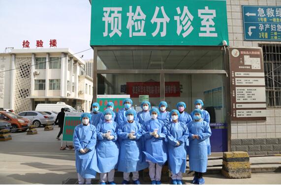 预检分诊室大多数是女同志(王玉、武红梅、刘向玲、张月月、刘春艳、华晓凡、王涛、曹娅、徐俊莲、王飞、陈庚、赵宝、张宝梅、郭柯柯、高环环、魏玲芝、乔欣、罗鹏宇)张飞是这支队伍中的一名男同志。张飞说:作为男同志,一天工作下来都很累,女同志们就更不用说了!特别是在上夜班的时候,现在晚上的天气还很冷,值班人员一直要进进出出,面对寒冷谁也没有抱怨过。天气是寒冷的,她们默默付出的工作态度是温暖的。