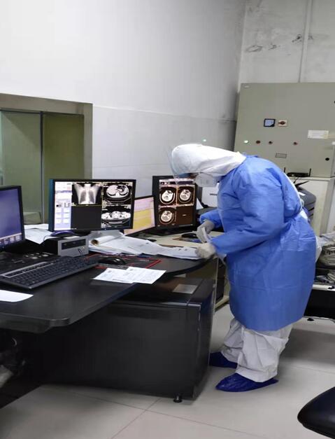 CT、化验是可疑新冠肺炎患者的必检项目,患者在做CT和化验检查时,发热门诊值班医生第一时间与CT室、检验科工作人员进行沟通,安排时间进行检查。检查结束后,工作人员对机器和场所进行严格消毒,防止交叉感染。