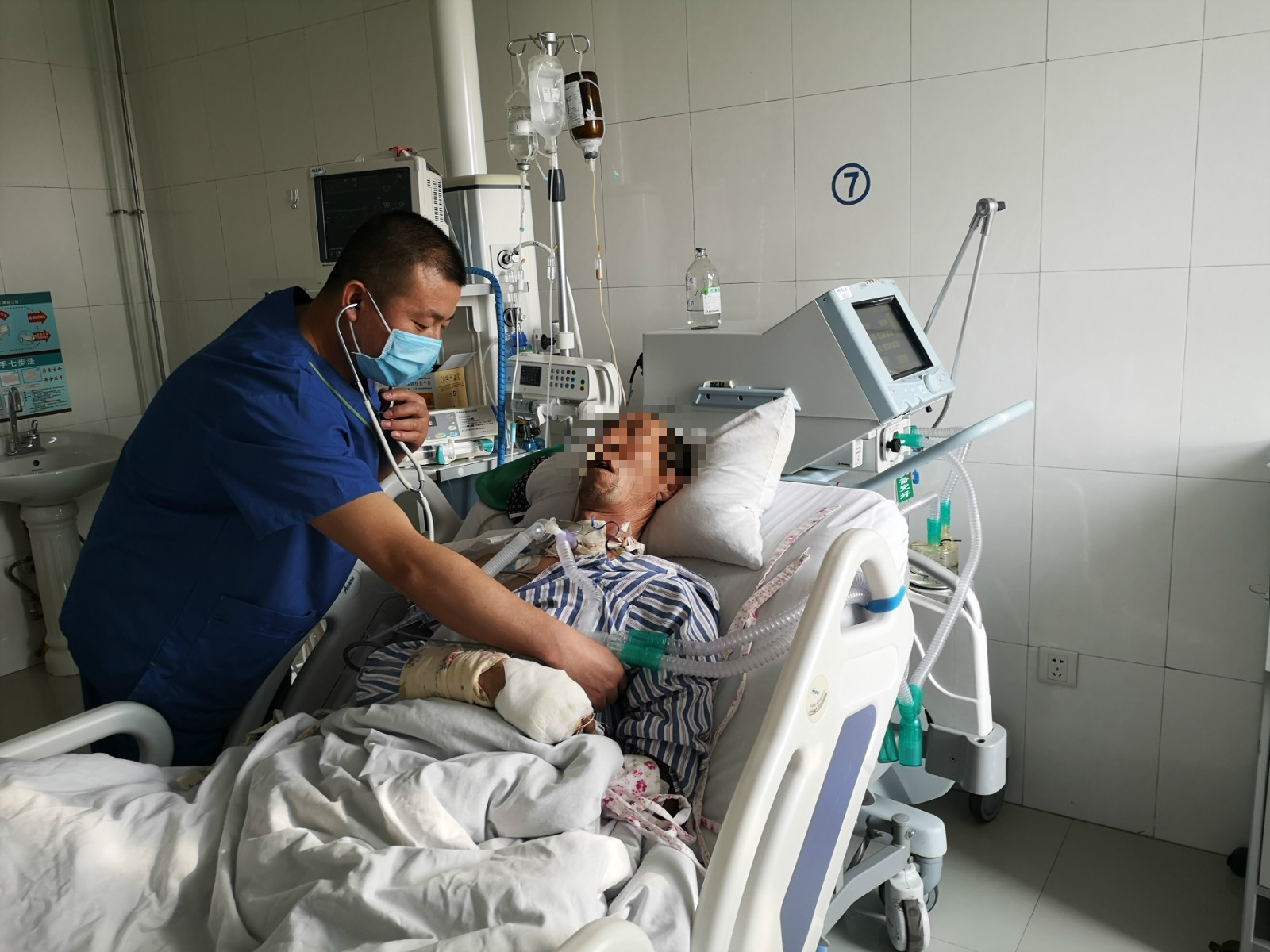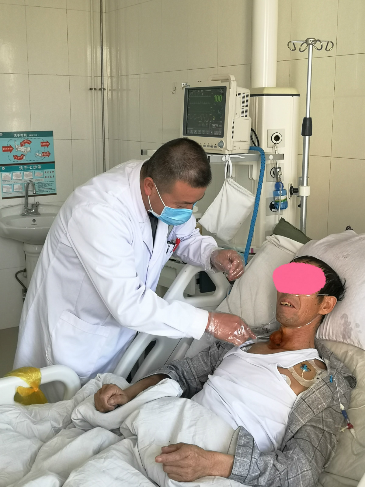 患者入院后,主管医生王建东考虑到破伤风若病情继续恶化,随时可因窒息或呼吸衰竭而导致死亡。他与主任刘国龙反复讨论后,积极与家属进行沟通,建议尽早行经皮气管切开术。经家属同意后,对患者进行了气管切开术,避免了因病情突然加重而危及患者生命情况的出现。此次气管切开为我院重症医学科开科以来,由ICU独立实施气管切开第1例手术患者。