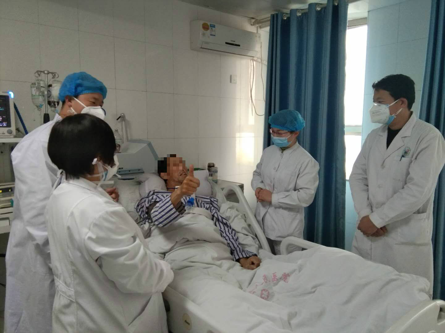 科室医务人员为避免患者内心恐慌,一直未敢将破伤风病情的严重性告知患者,作为一名普通农民家庭里的顶梁柱,患者躺在床上还想着住院的费用与筹集问题,每次查房值班医生都安慰与鼓励患者,让患者对疾病的康复充满信心,患者虽然气管切开无法表达,但总是竖起右手大拇指对医护工作人员的关切表示感激之情。