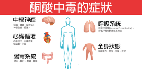 由于不易被察觉,约有40%患儿首次就诊即表现为糖尿病酮症酸中毒。酮症酸中毒患儿除多饮、多尿、体重减少外,还有恶心、呕吐、腹痛、食欲缺乏,并迅速出现脱水和酸中毒表现:皮肤黏膜干燥、呼吸深长、呼气有酮味(烂苹果味),脉搏细数、血压下降,随即可出现嗜睡、昏迷甚至死亡。