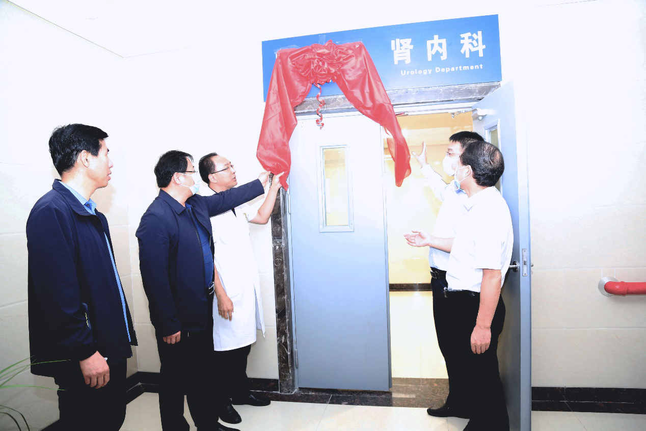 座谈会后,一行人来到肿瘤科揭牌并参观科室。