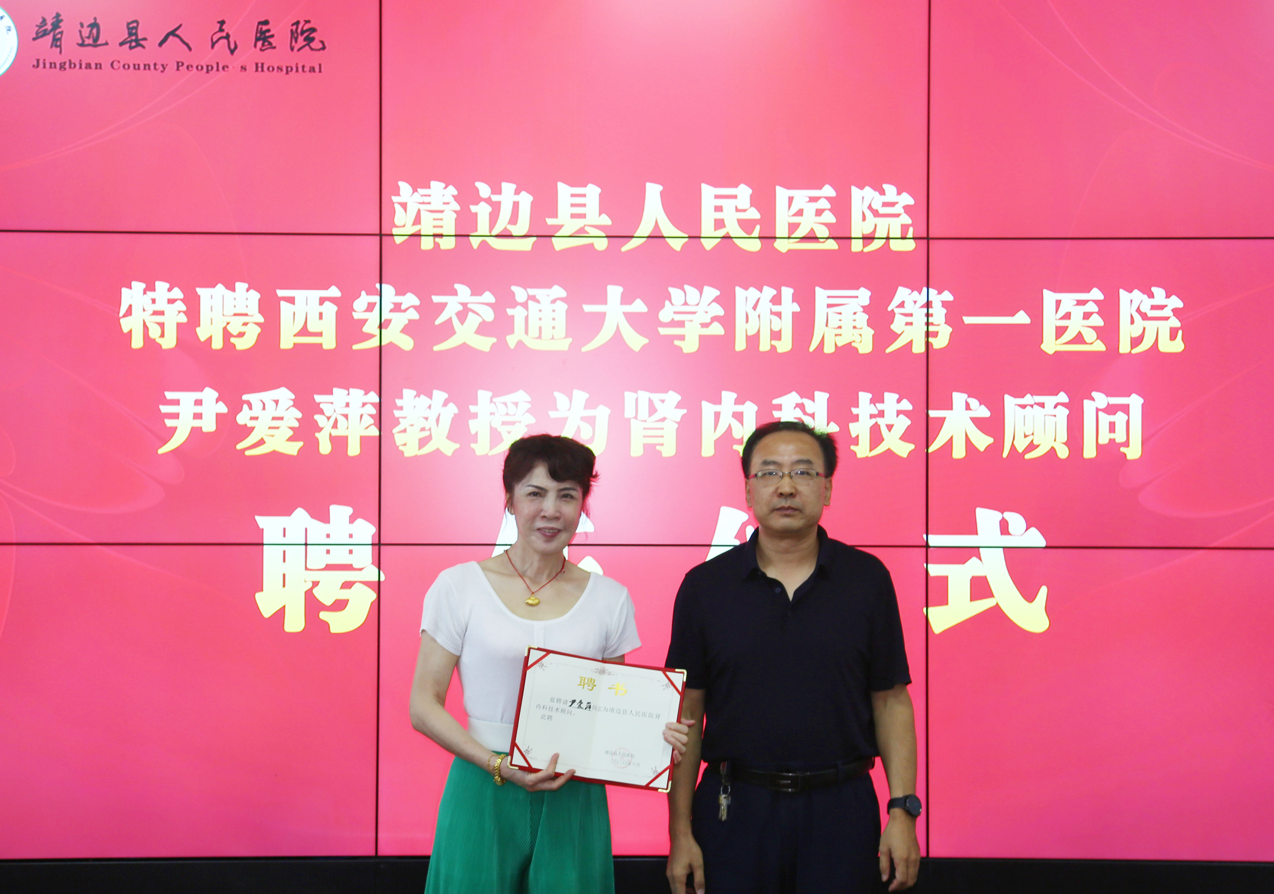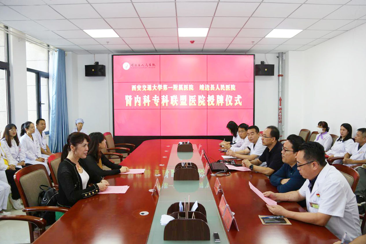 会上,副院长袁海军宣读了《靖边县人民医院关于特聘西安交通大学第一附属医院路万虹主任 尹爱萍教授为肾内科名誉主任及技术顾问的决定》。宣读结束后,路万虹主任为我院进行了授牌,马院长为两位教授分别颁发了聘书。