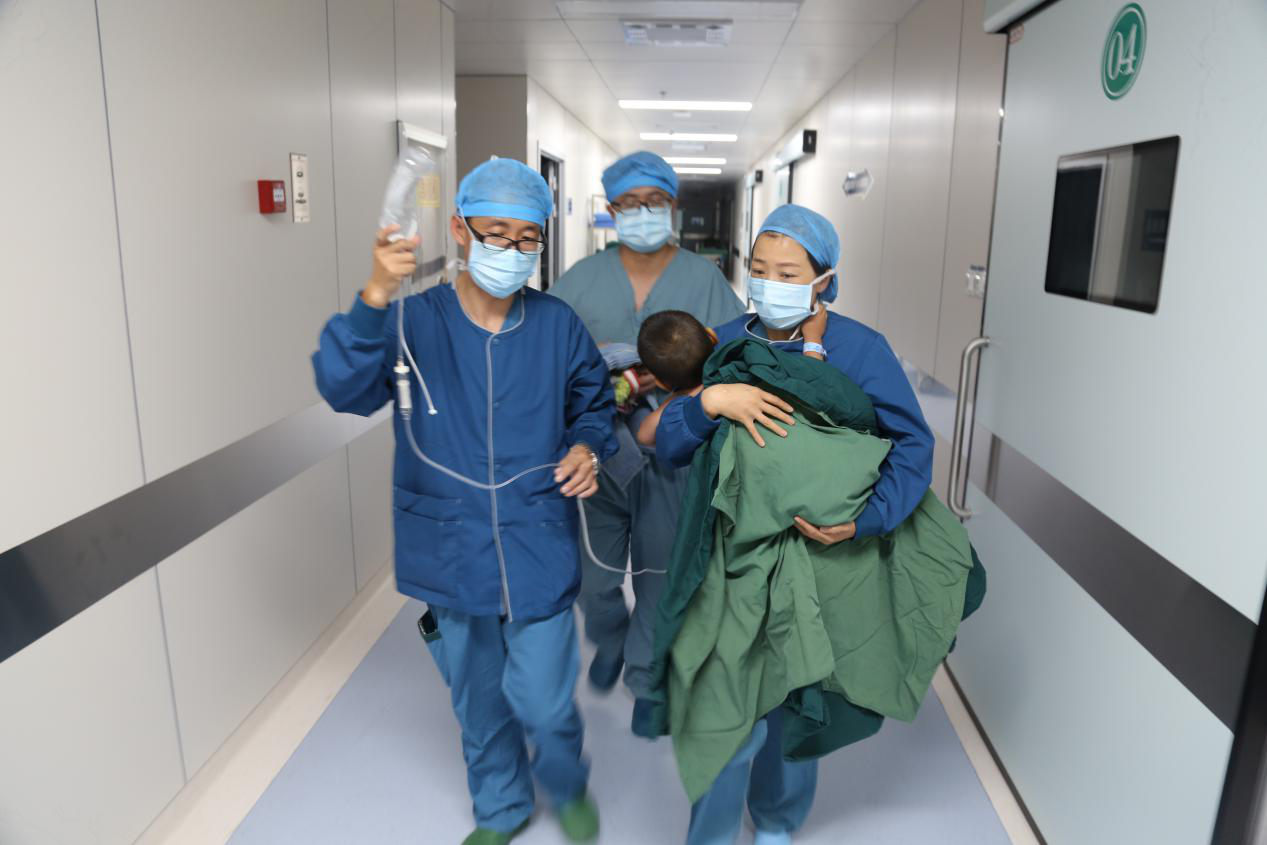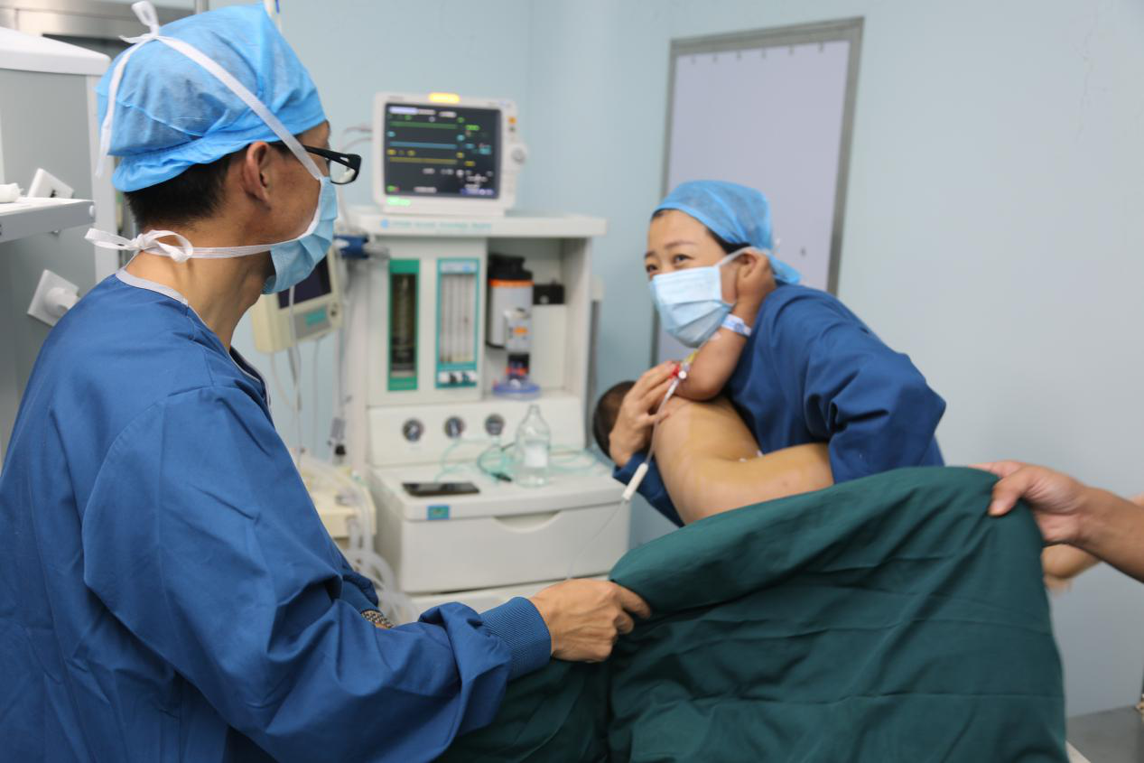 这次手术的成功也离不开手术麻醉科的医生和护士协助。因为孩子年龄较小,离开父母进入手术室孩子有恐惧心理。进入手术室孩子一直在哭闹,麻醉医生和护士捉着孩子的小手,抚摸着他们的小脑袋,想尽办法哄孩子开心。