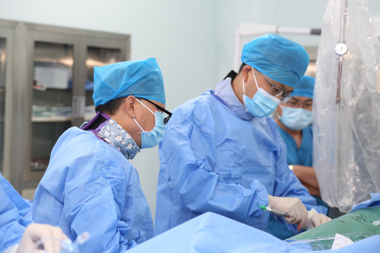 在胡宾教授的精心指导下,手术在我院导管介入中心顺利进行。2小时手术顺利结束,术后患者生命体征平稳,安全返回病房。在心血管内科介入团队密切配合下,顺利完成了6台手术。