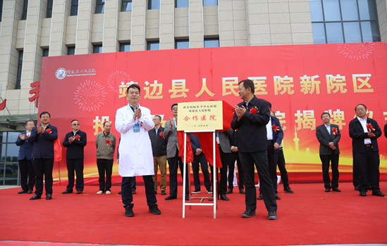 刘波副县长在致辞中讲到:“为了更好地满足广大群众就医需求,我县投入5.6亿元建设了靖边县人民医院新院区。新院区的投运和合作医院的揭牌,对于改善医院医疗服务条件,优化县区医疗卫生服务体系,满足广大群众日益多元化就医需求具有十分重要的意义,同时也标志着靖边县医疗卫生事业取得了新的进步。希望县医院进一步加强人才梯队及重点学科建设,努力提高服务水平,全面提升患者就医满意度,力争打造成为省内知名、市内一流的现代化综合医院,希望各友好合作医院、社会各界人士继续一如既往的关注和支持靖边医疗事业发展。”