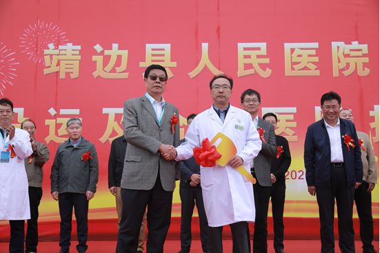 2020年9月26日,靖边县人民医院新院区投运暨合作医院揭牌仪式在门诊楼前隆重举行。市卫健委主任惠德存,苏州大学附属第二医院院长徐博,西安国际医学投资股份有限公司医生集团总经理马伯林,苏州大学医院管理处处长徐小乐,西安国际医学中心医院肿瘤医院院长南克俊,市卫健委医政科科长王莉君,陕西省泌尿外科质控中心主任种铁,陕西省人民医院常务副院长程永毅,西安交通大学研究生培养处处长张明,西安市第一医院党委书记杨军乐,陕西省放射诊疗质控主任崔光彬,陕西省放射学会主任委员郭佑民,唐都医院感染科教授郝春秋,唐都医院感染科主任连建奇,县委书记刘维平,县政协主席王武,县委常委、宣传部部长邬晓君,县人大副主任高升,县政府党组成员刘生峰;县委、县政府各工作部门,各镇(便民服务中心),驻靖各有关单位负责同志,部分县人大代表、政协委员和老干部代表以及其他友好合作医院和各兄弟市县区医院领导出席了揭牌仪式。此次仪式由县委常委、县政府副县长刘波主持并致辞。