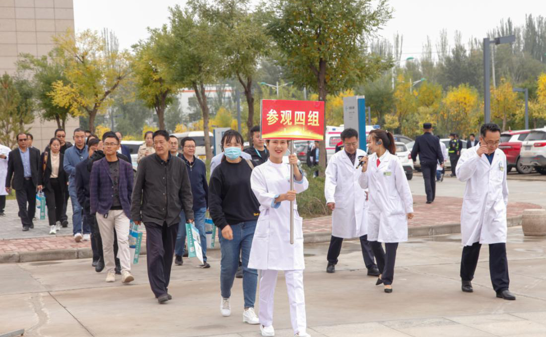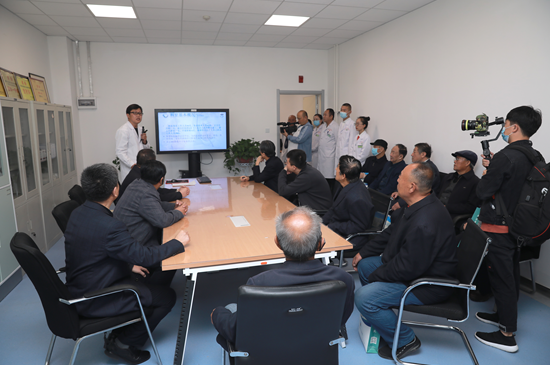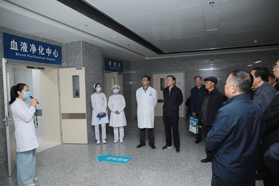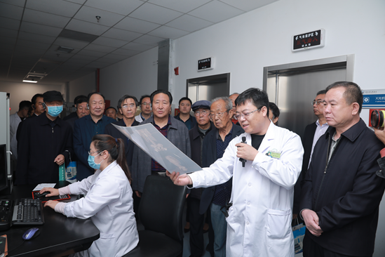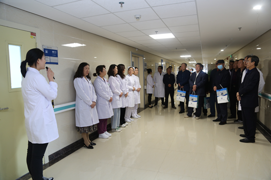 宣传片观看结束后,参会人员分为四组,每组由一名解说员进行讲解,由我院院长马枭今、副院长刘朝曦、袁海军、党总支副书记姬向兵分别带队,参加我院检验科、影像中心、口腔中心、血液净化中心、妇产科等科室。