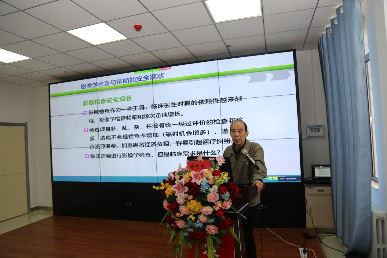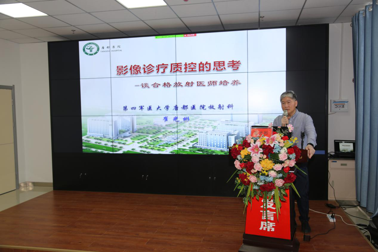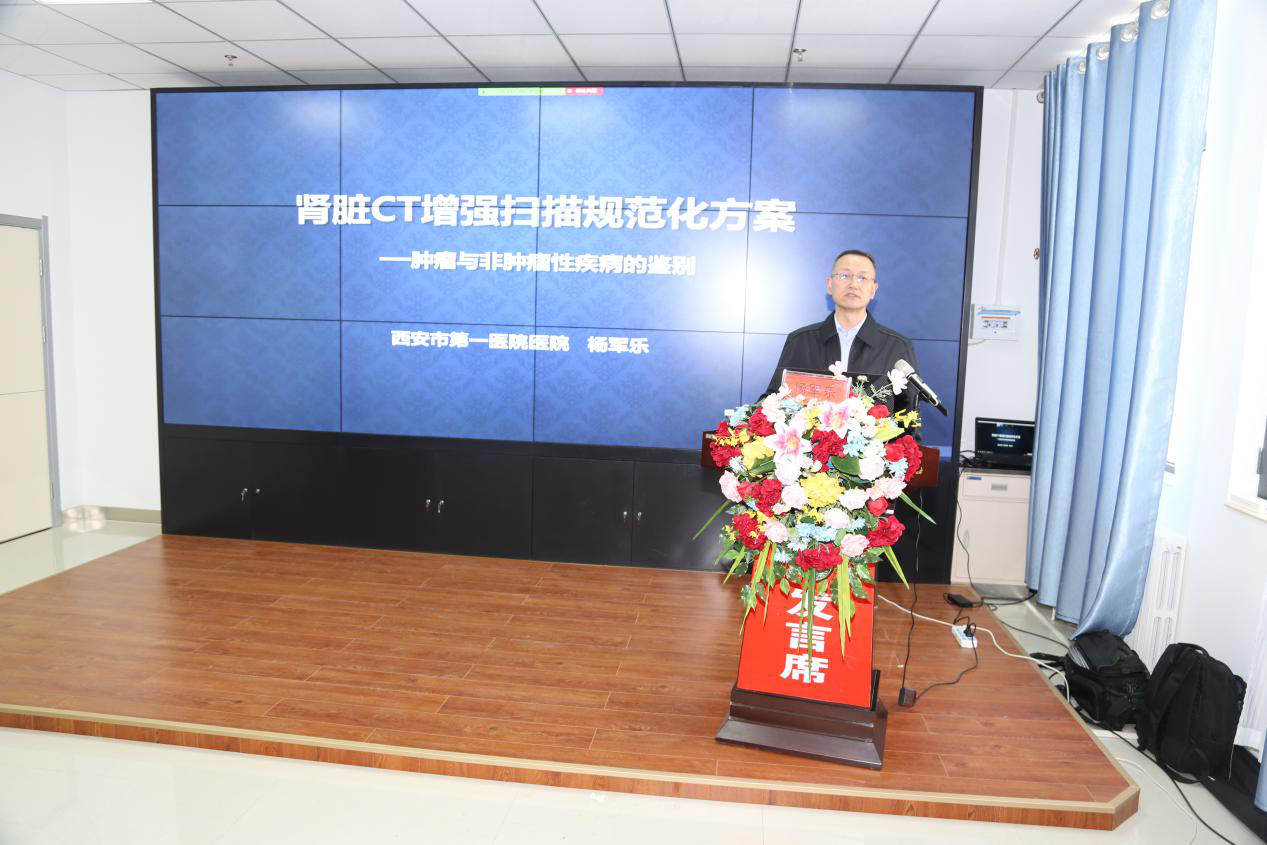 图为:西安市第一医院党委书记、西安市影像质控中心主任杨军乐教授讲课