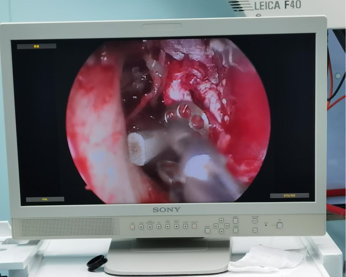 患者中耳炎病史10余年,曾反复口服药物及局部点药治疗,花费大,而且听力明显下降,严重影响生活质量。于2020年9月底,到我院耳鼻喉科住院治疗。入院后对其进行详细检查,检查结果显示患者符合手术条件,医务人员与患者家属沟通后,家属同意进行手术。我院耳鼻喉科在交大二院专家李阳的指导下进行了手术,手术非常顺利。术后半月患者来院复诊,患者自诉已接近正常耳听力。