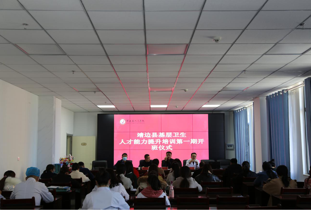为进一步提高我县乡镇卫生院和社区卫生服务中心管理人员的服务能力和技术水平,,2020年11月10日下午,由靖边县卫健局主办,我院承办的靖边县基层卫生人才能力提升培训班仪式在我院行政楼4楼会议室举行。参加开班仪式的有卫健局副局长边震,我院副院长王雄、袁海军,工会主席冯勇,相关职能部门负责人,临床带教老师以及培训人员。仪式由副院长王雄主持。
