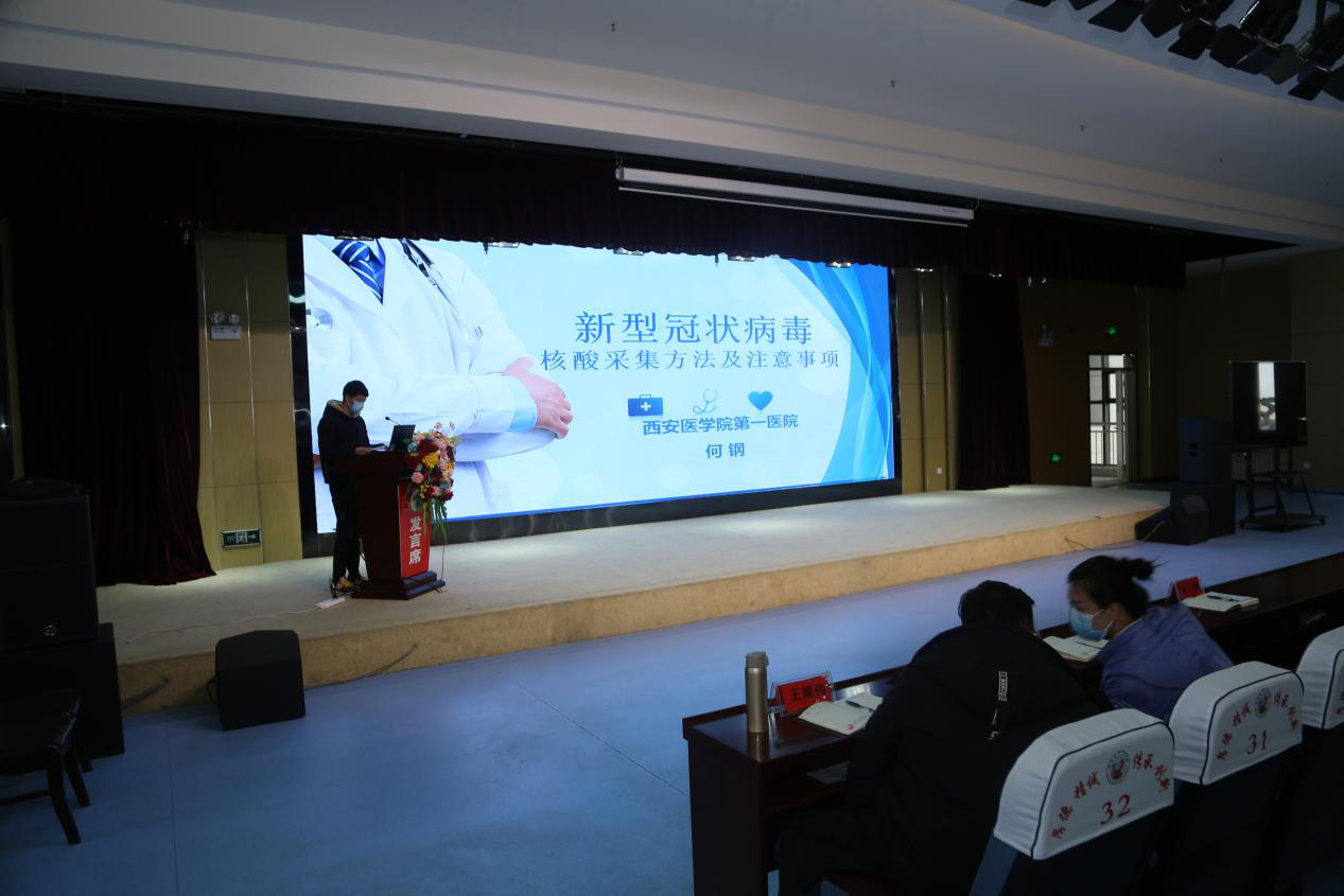 为深入贯彻陕西省应对新冠疫情工作领导小组办公室下发的《关于做好应对农村新冠疫情三级医院对口帮扶县级医院有关工作的通知》文件精神,切实加强农村地区新冠疫情防控工作,提升我院应对疫情及院感防控能力。2021年1月18日,西安医学院第一附属医院派驻医疗队队长检验科专家王耀伟,队员感染控制科专家折保花、急诊科专家何钢莅临我院指导帮扶疫情及院感防控、核酸采样人员培训与考核工作。