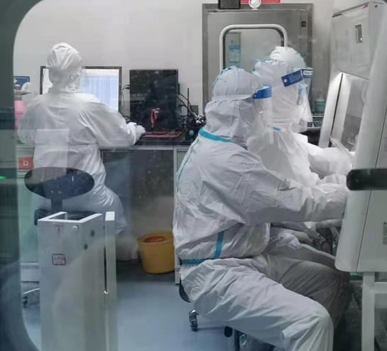 检验科接到任务立即组织人员做好应急准备,人员全部到位。标本转运至检验科,检测组安排核酸实验室检测人员,检验科一班七小时,共分三班,每班7人,实行人员轮班,机器不停转,确保检测任务及时完成。
