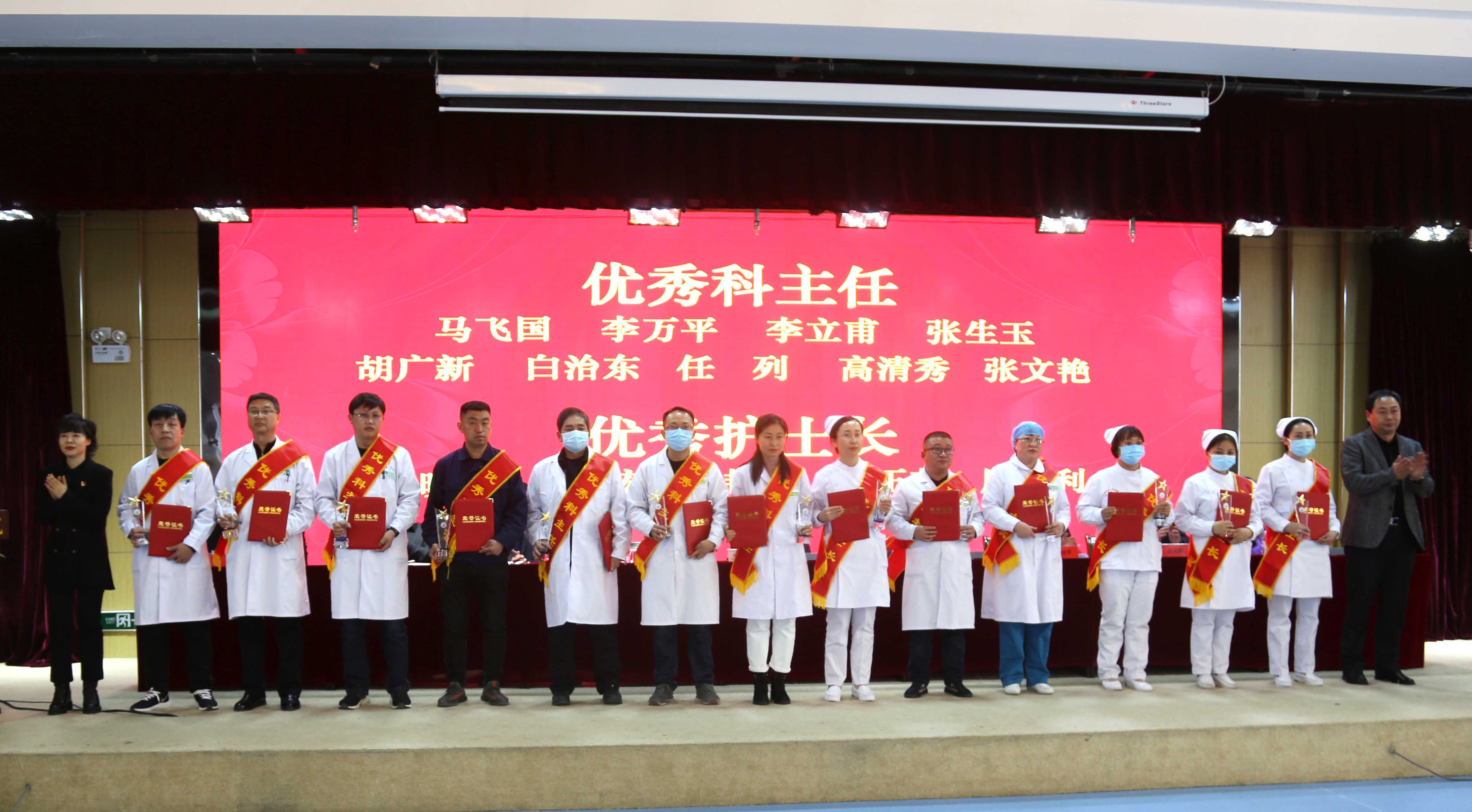 2021年3月9日下午,我院在行政楼2楼会议中心召开2020年度工作总结暨表彰大会。参加会议的领导有:县委常委、县政府副县长刘波,县委常委、宣传部长白银喜,县人大副主任李京津、县政协专职常委杨连军、县卫健局局长胡治民、县医保局局长白玉鹏、县卫健局副局长田怀军、部分乡镇卫生院院长、以及我院领导班子成员、各科室主任、护士长、全体党员、受表彰的先进工作者及各科室职工代表。会议由副院长刘朝曦主持。