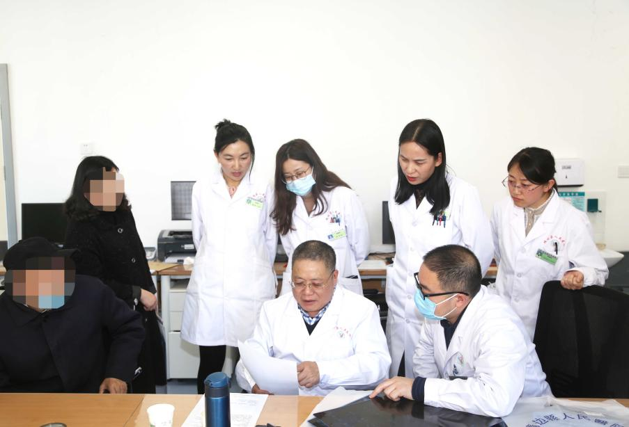 会议结束后,陕西省肿瘤医院专家廖子君教授在肿瘤科病区与肿瘤科副主任冯学君及医护人员进行了十余例患者病例讨论,之后对患者进行了查房。