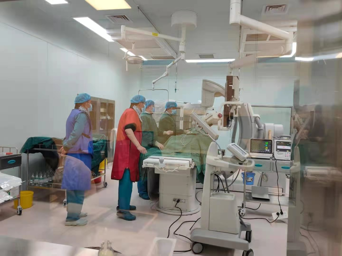近年来我院对介入科通过人才引进、派遣科内人员外出进修学习、邀请三甲医院知名专家来院技术指导,开展了多项高难度的介入手术,取得了很好的成效,也得到了患者的认可。在发展人才梯队建设的同时,还引进大型设备“大C”来完善科室建设。通过多项举措极大的提高了介入科的整体医疗技术。