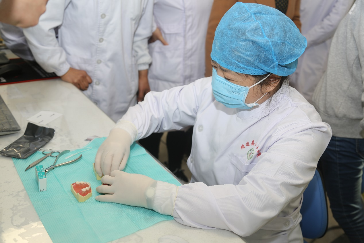 培训会结束后,王小竞教授、张彩娣老师到我院口腔中心门诊,视频连线对会场人员进行实践操作演练。