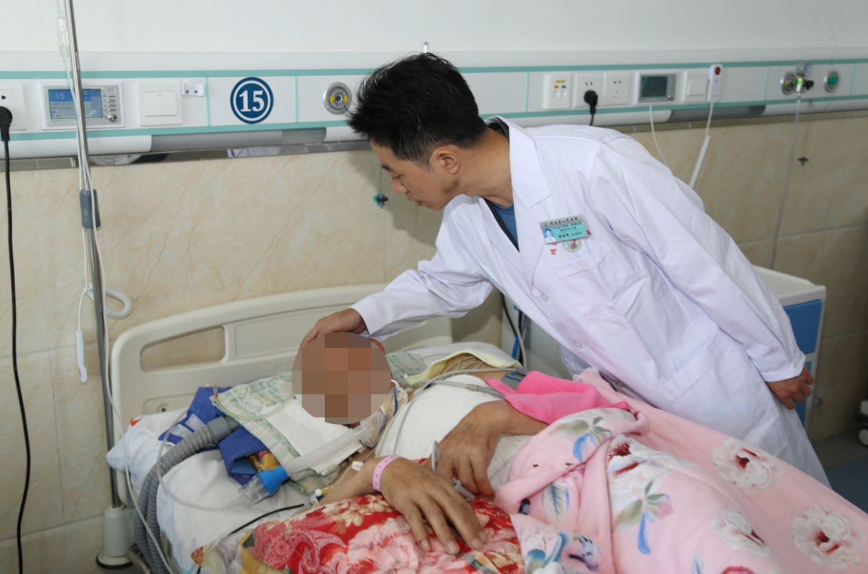 图为:神经外科专家张俊锋查房