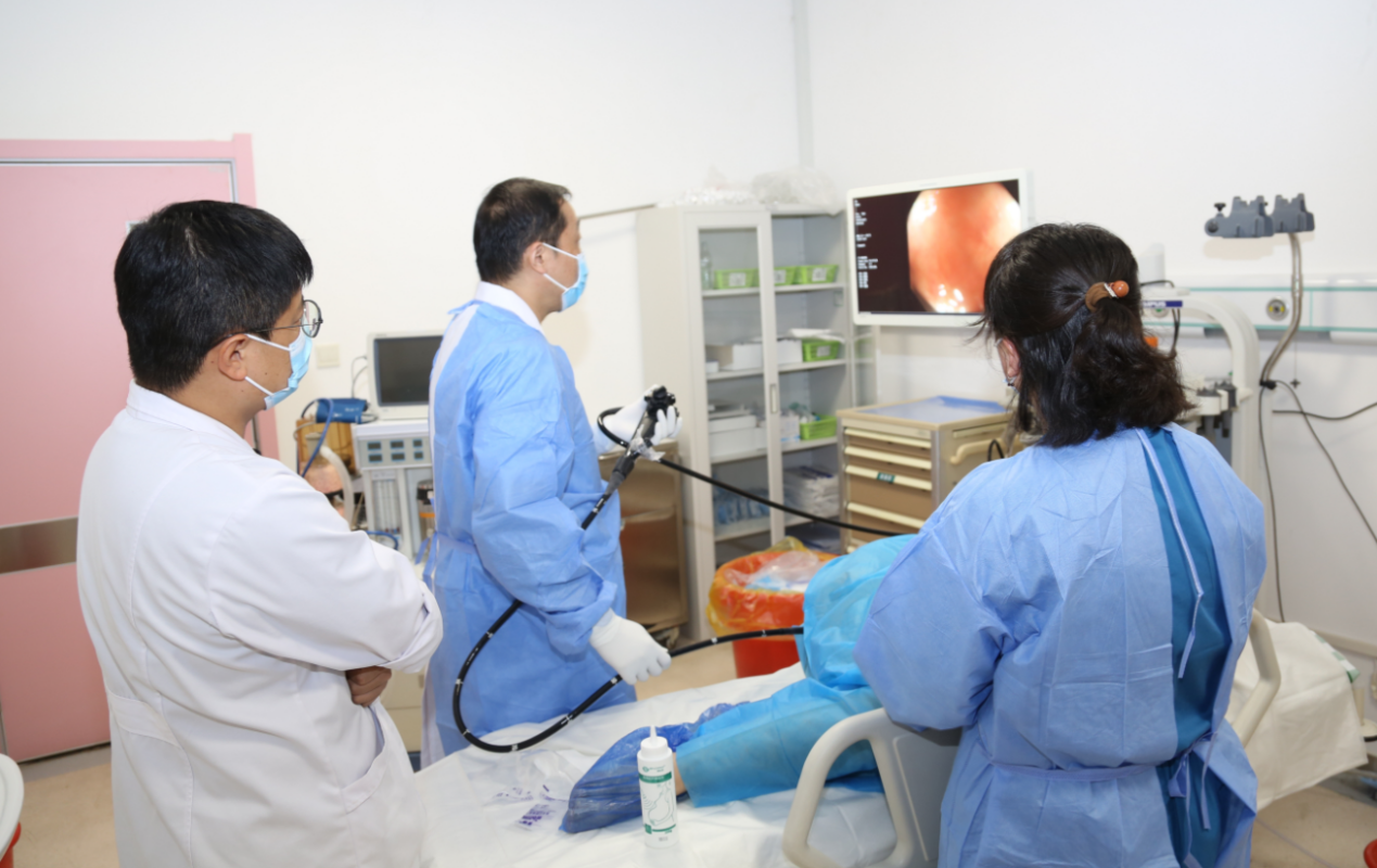图为:内镜中心专家杨永勤做内镜检查