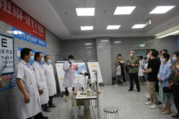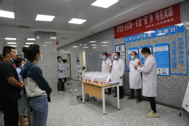 学党史,办实事,广宣传,爱眼日,讲素质,提意识。为进一步呼吁全社会增强爱眼护眼意识,积极践行“我为群众办实事”。2021年6月6日,在第二十六个全国“爱眼日”,我院眼科本着“保护视力从小做起”、“加强全民爱眼意识提高民族健康素质”的理念,在门诊楼三楼眼科开展义诊活动,全方位科普近视、白内障、眼底病等眼病防治(控)知识,提高眼健康知晓度。