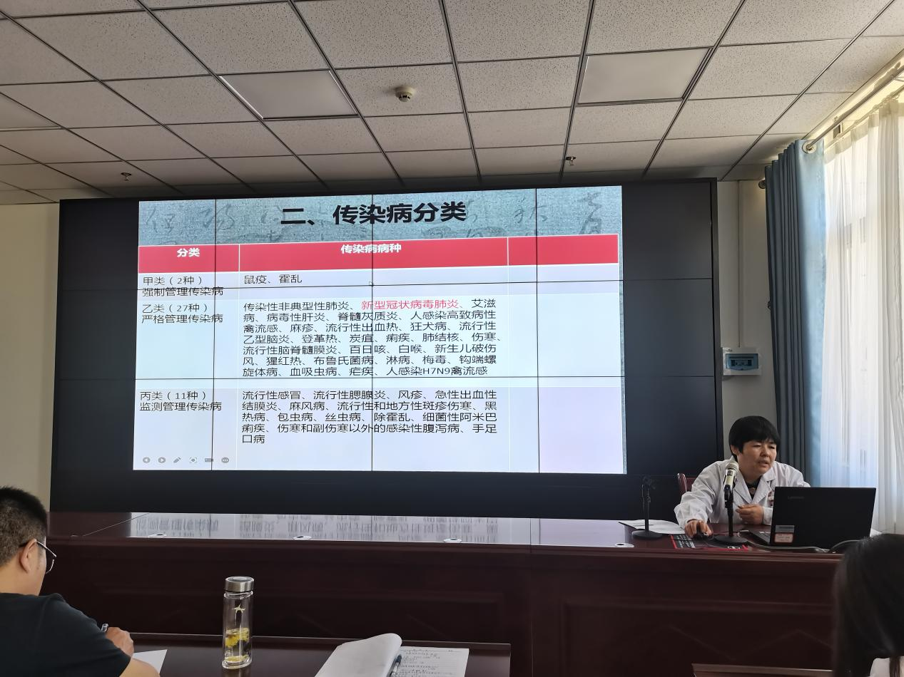 会上,副院长王雄、疾病预防控制科主任徐美艳、分别以《新型冠状病毒疫情防控方案(第八版)》、《传染病分类》进行了专题知识讲座。感染管理科主任曹连云就我院医院感染防控存在的问题进行了强调和部署。
