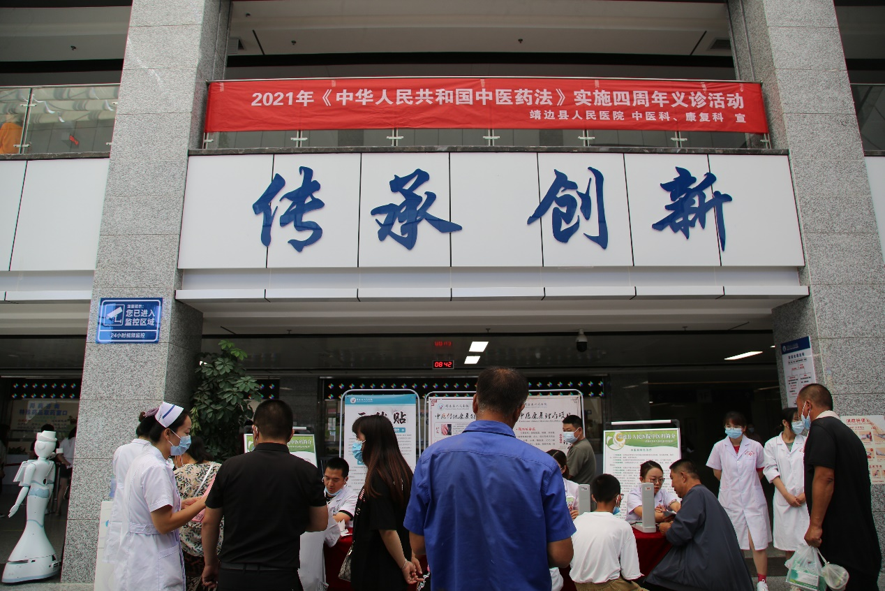 2021年是中华人民共和国中医药法实施四周年,为了更好的传播中医药文化,普及中医保健知识,7月14 日早上八点,我院中医科、康复科医护人员在门诊一楼大厅开展免费义诊活动。