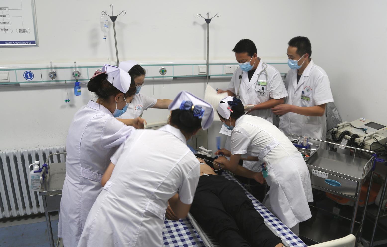 为了进一步提高我院院前急救快速反应能力和急性胸痛患者院前急救能力,确保院前急救与胸痛中心的无缝对接,以增强我院医护人员急诊、急救意识,牢固树立“生命至上,争分夺秒”的急救理念,检验各环节应急反应能力和生命绿色通道的畅通情况。在我院急救中心组织下,2021年7月23日,我院开展急性胸痛患者急救演练。医务科、护理部、心血管内科,等相关科室参加了此次演练。