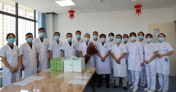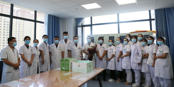 在第四个中国医师节到来之际,2021年8月19日,我院党委书记、院长马枭今,党委委员、副院长刘朝曦、王雄、袁海军,党委委员、副书记姬向兵、工会主席冯勇及其他院领导、相关职能科室负责人分两组,深入临床一线分别进行慰问,并为一线医护人员送去鲜花、蛋糕和节日的祝福并亲切问候。感谢他们一直以来的辛勤付出。