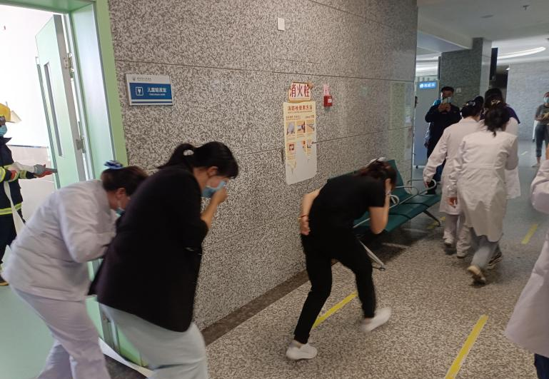 为切实做好当前医院安全工作,增强医护人员抵御突发事故、事件的能力,充分保障医护人员及病人生命安全,我院于2021年9月10日,在儿科门诊前开展消防火灾事故疏散演练,部分医护人员及后勤、保洁、保安、微型消防站全体人员参加了此次演练。