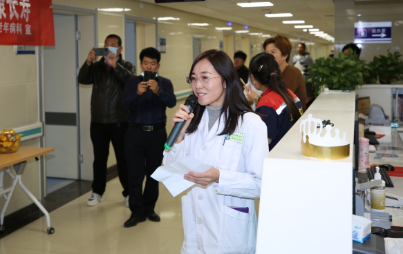 此次活动由综合内科副主任崔英主持,主任任子美作了讲话:“综合内科老年科在院领导的支持下,本着党和政府让老年人“老有所养,老有所医”的宗旨,不忘初心、牢记使命,全心全意为老年人服务,做好老年人健康的守护神。”