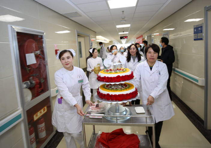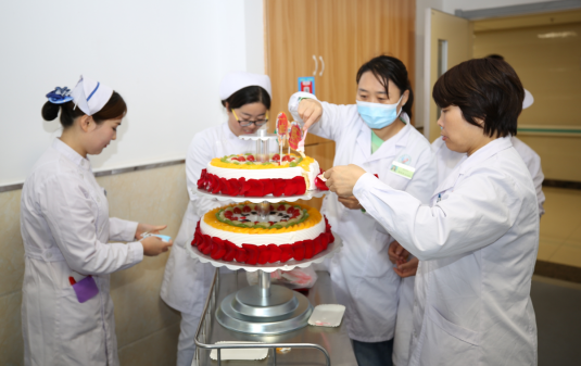 重阳节当日,正好是一位患者的生日,借着这次机会,我院综合内科全体医护人员带着准备好的二层生日蛋糕,为老人戴上生日帽、唱生日歌,现场气氛融洽而温暖。
