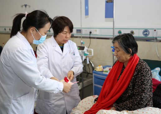随着一声声“重阳节快乐,祝您早日康复!”的话语,满载着医护人员美好祝愿的蛋糕和围巾送到了老年患者手中。他们有的言语不清,有的听力减退,但收到小礼物的老人们脸上都露出了高兴的笑容。