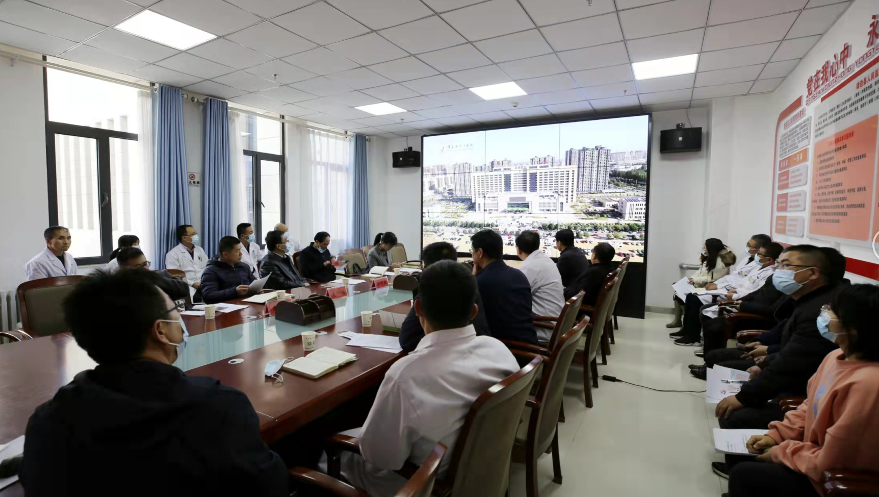调研组观看了我院在庆祝中国共产党成立100周年系列活动宣传视频。观看结束后,李万昌书记详细听取了我院马枭今院长对医院党建工作开展情况的汇报,并向我院各党总支书记、支部书记了解了党建工作思路、典型做法和党委决策部署、党总支监督落实、支部具体执行的基本情况,以及党建工作中的困惑和存在的问题。