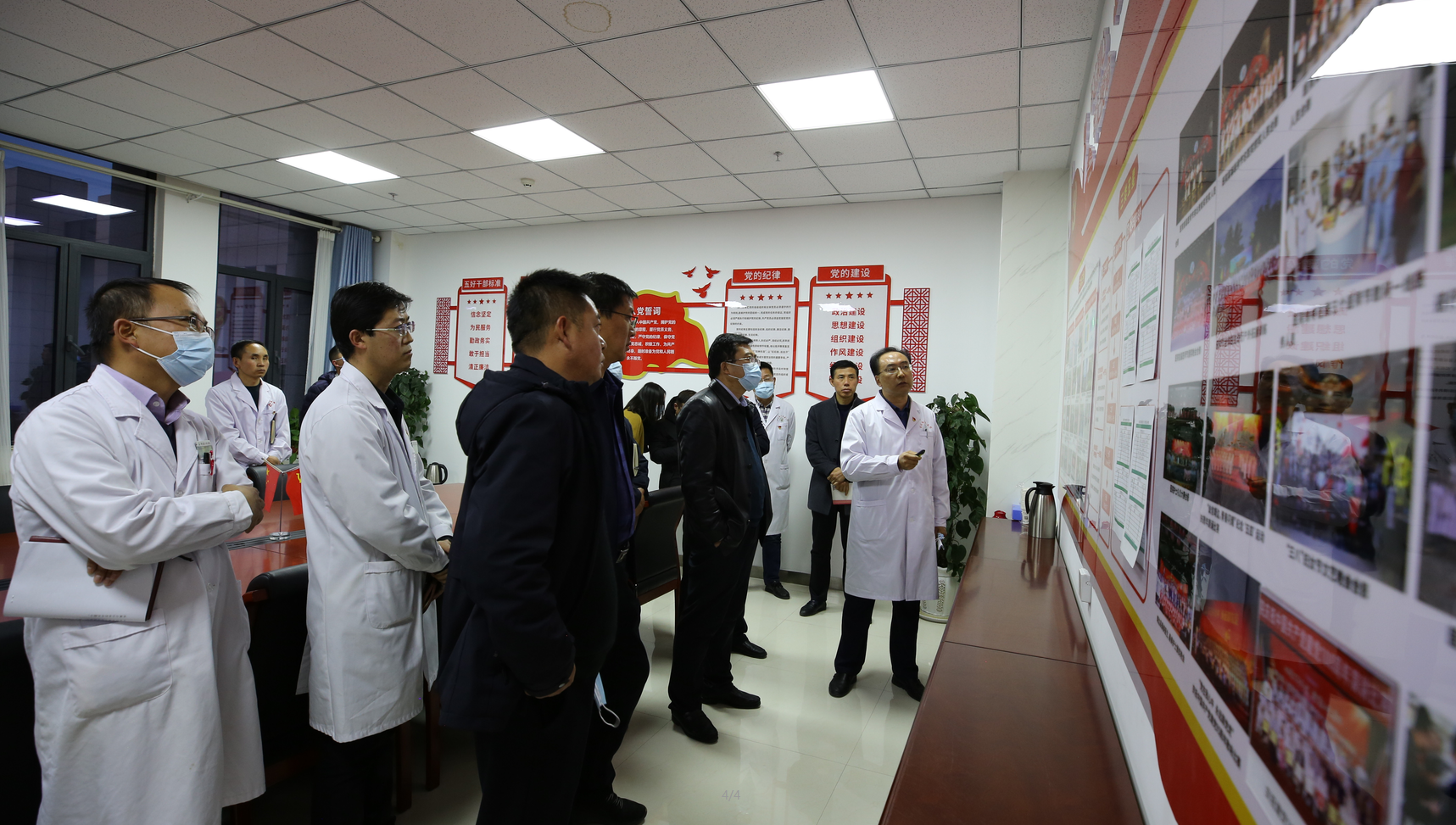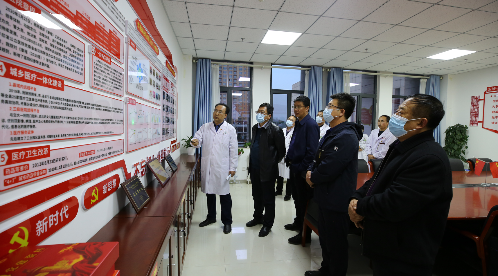 2021年11月11日,县委副书记李万昌、组织部副部长曹克忠、蒋作鹏主任一行,莅临我院调研指导公立医院党建工作。县卫健局局长胡治民、副局长田怀军、胡建华、党组成员王永军及局有关领导,我院党委书记、院长马枭今及党委副书记、各党总支书记、支部书记陪同调研。