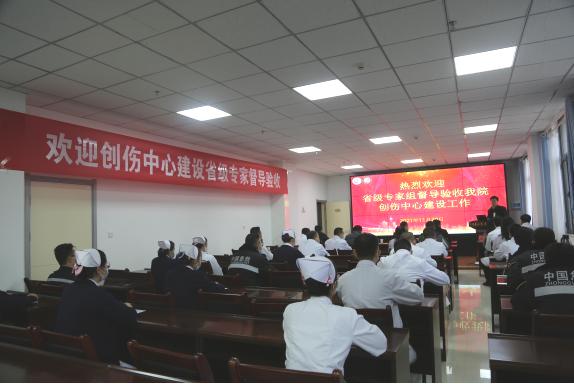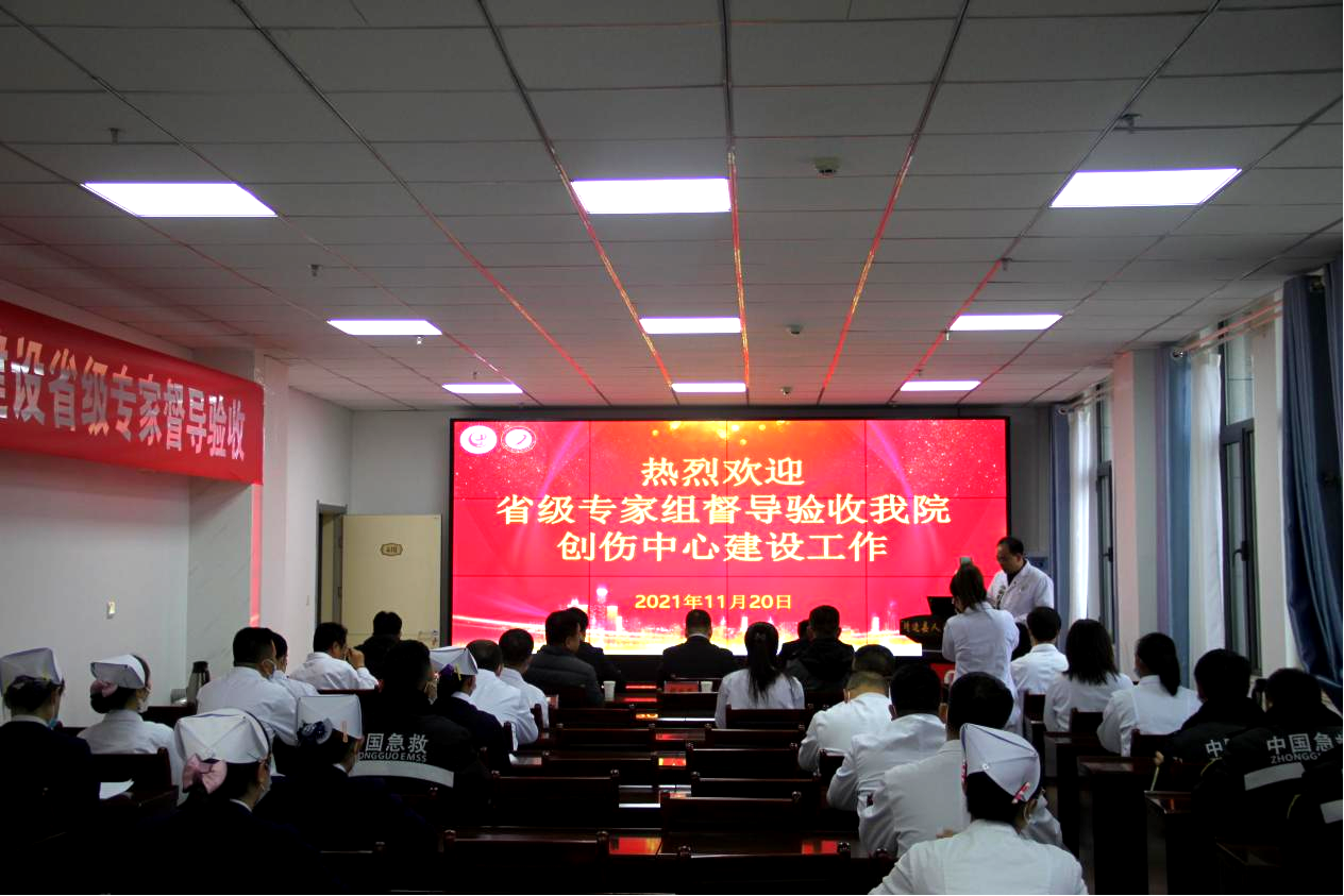 在我院行政楼4楼会议室,专家组组长王伯良、市卫健委医政科科长王莉君,就此次创伤中心督导验收工作进行了安排和部署。同时听取了我院党委书记、院长马枭今对我县县域基本情况,医院概况,创伤中心组织管理及建设情况,相关制度、流程及绿色通道,创伤救治与评估情况,培训、健康宣传、质控情况及存在问题和发展规划等方面的汇报。