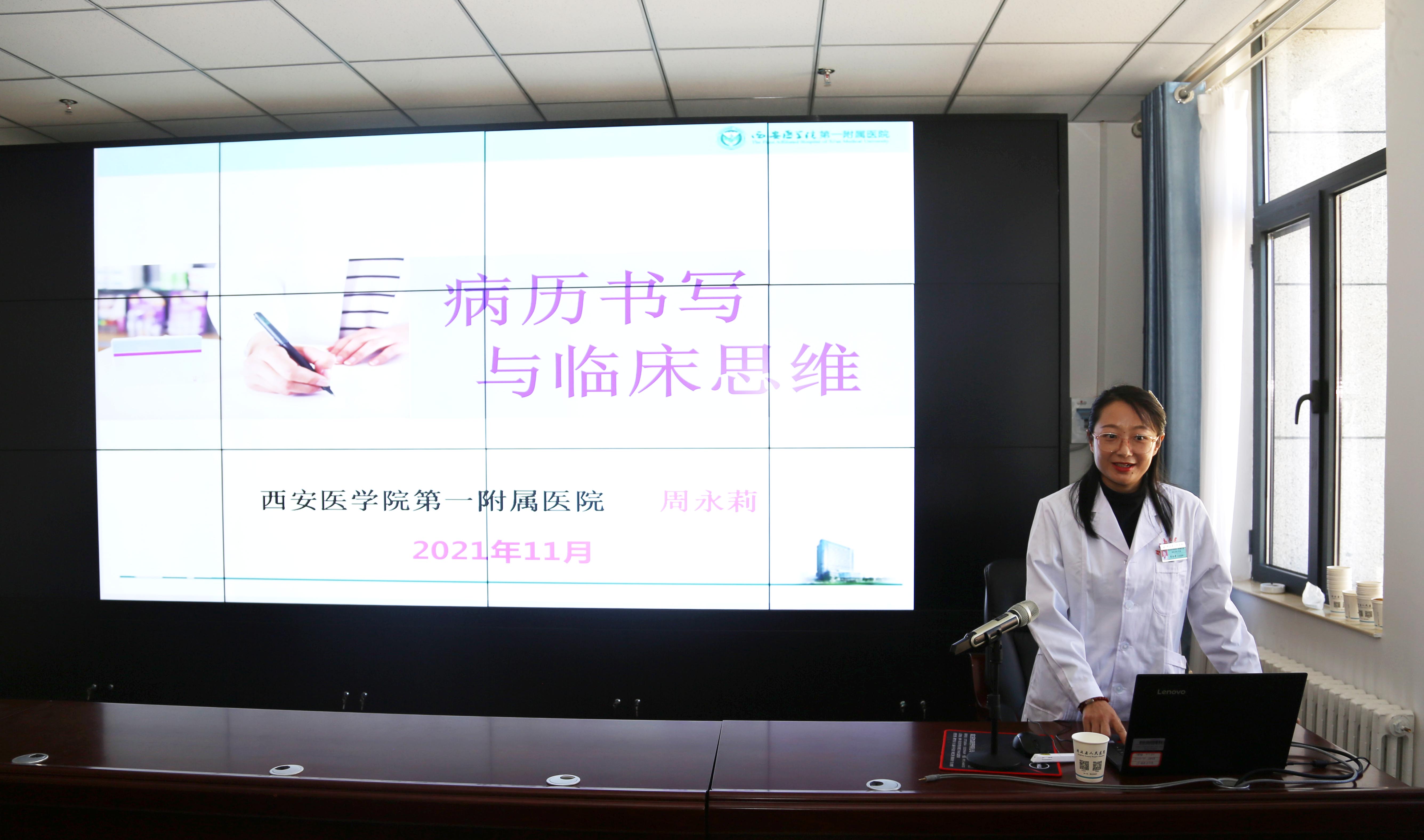 首先由西安医学院第一附属医院支医专家周永莉副教授就病历书写与临床思维做了深入简出的讲解。她围绕病历书写的重要性、方法、具体要求及如何提高病历内涵质量建设等几个方面作了全面的阐述。讲解中还为我们展示了北京协和医院的优秀病历和百年典型病历,值得我们每一位医师认真学习,也反应出病历书写对一个医院文化内涵建设的重要性。