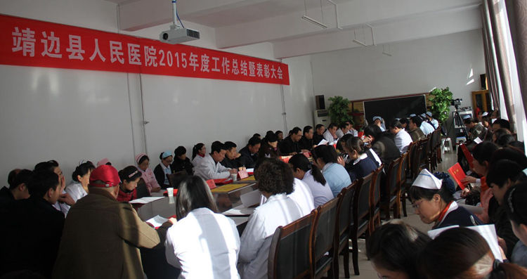 2月2日下午,“靖边县人民医院2015年度工作总结暨表彰大会”在德业楼二楼会议室召开。县政府副县长胡荣芳、卫生局长余治洲、副局长田怀君应邀出席会议并讲话。会议由院工会主席牛玉东主持,全院各科室主任、护士长及受表彰的先进个人参加了会议。 会议总结2015年度工作情况,部署2016年医院的主要工作任务,对先进科室及先进个人进行了表彰。