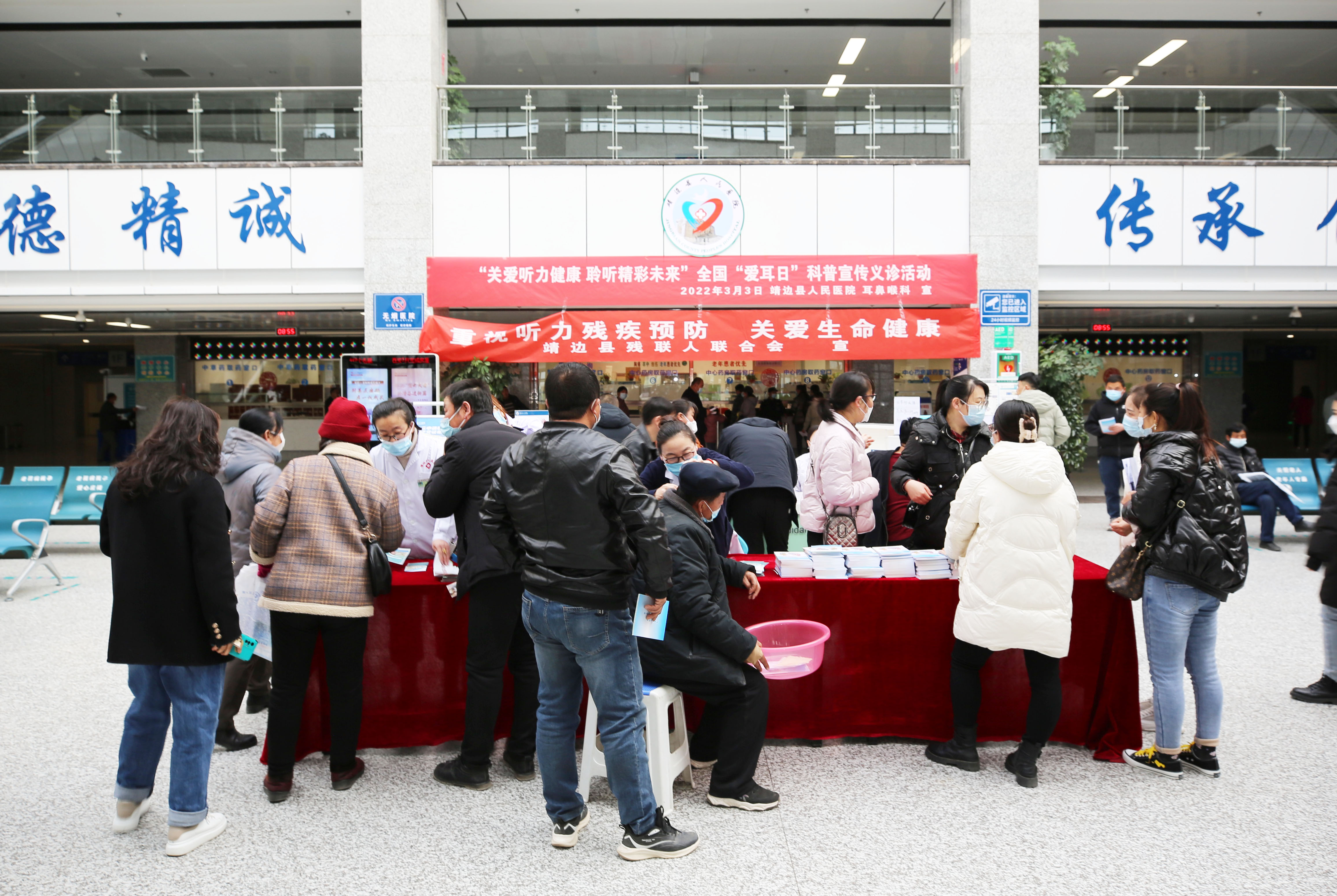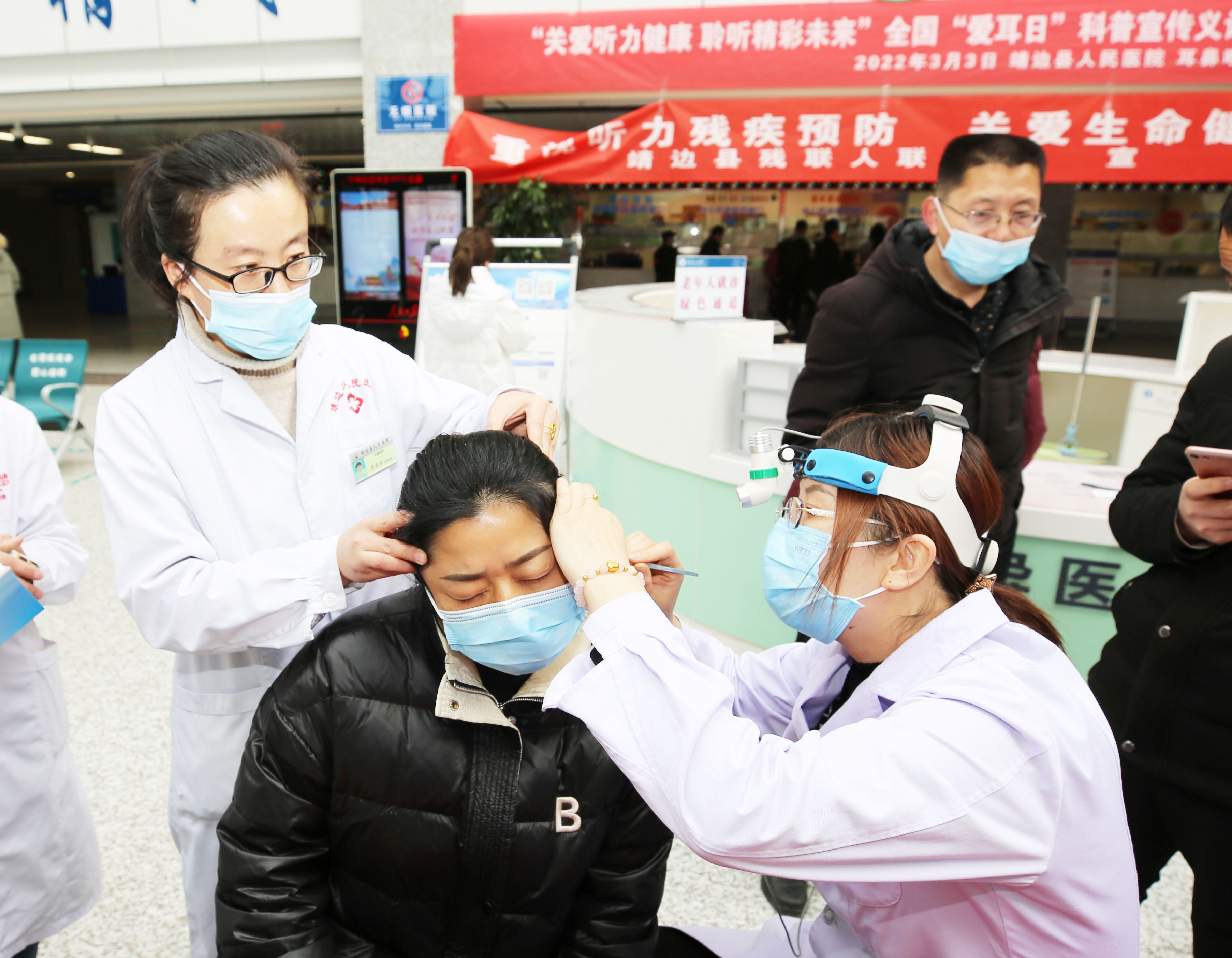 2022年3月3日,是第23个全国“爱耳日”,为普及全民听力健康科学知识,增强全社会听力残疾预防意识和预防能力,推动“十四五”听力残疾预防与康复事业高质量发展,我院耳鼻喉科于2022年3月3日在门诊楼一楼大厅开展以“关爱听力健康,聆听精彩未来”为主题的免费义诊活动。
