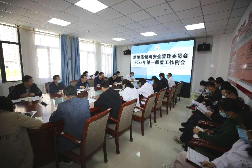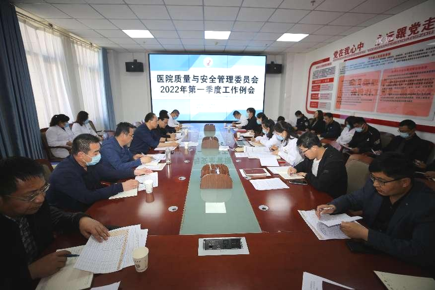 2022年4月28日,我院在行政楼2楼会议室召开了2022年第一季度医院质量与安全管理委员会例会,医院领导班子成员、各委员会主任、副主任、评审评价办全体人员参加了会议,会议由我院党委书记、院长马枭今主持。