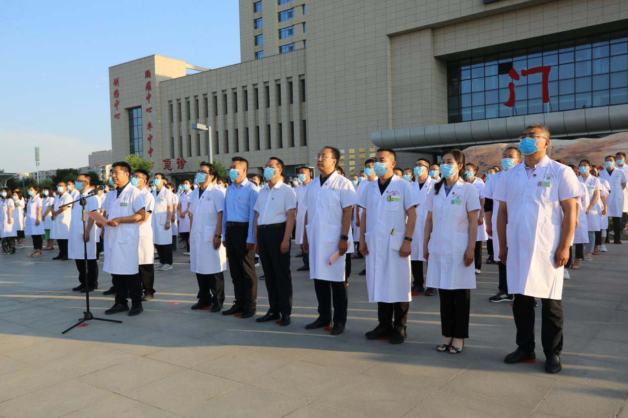 2022年7月1日,我院在南大门举行“喜迎二十大 奋进新征程”系列活动——庆“七一”升国旗仪式,县卫健局党组书记、局长薛向东、党组成员王永军,我院在院的党委班子成员,全体党员、中层及以上管理干部共计300多人参加升旗仪式。