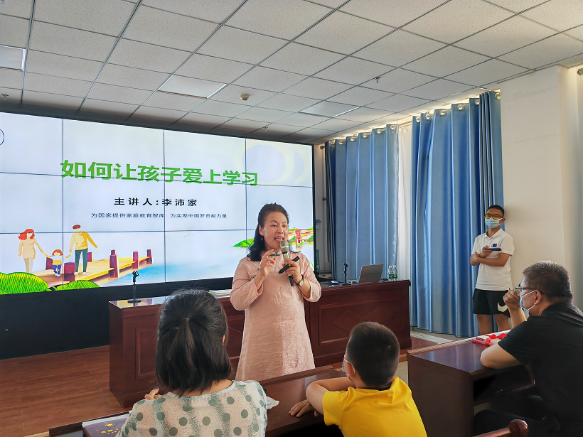 李沛家老师以《如何让孩子爱上学习》为题,围绕如何引领孩子逆袭成为学霸?分享了她的教育心得和妙招。老师的分享引起了现场听众强烈的共鸣,增加了教育孩子的信心。课堂上还通过亲子游戏互动,现场提问等等,使大家明白言传身教的重要性。