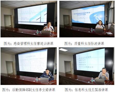 7月19日-7月20日,进行了医疗业务理论知识培训和心肺复苏实践操作培训。7月19日,由副院长王雄,党办、院办、人力资源部、宣传科、护理部、医务科、信息科、疾控科、后勤保障服务部、感染管理科、评审评价办、质控科主任分别从医疗安全,作风建设、规章制度,考勤管理制度,医院文化、网络舆情,护理文化,依法执业,信息安全,传染病防治,消防安全,医院感染病管理、新冠疫情防控,医疗质量与安全管理,医疗质量管理等方面进行了专题培训。