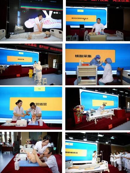 比赛由基本技能操作和理论知识问答两部分内容组成,分数各占50%。临床组操作内容为:脱隔离衣、心肺复苏、气管插管、 电除颤;医枝组操作内容为:脱隔离衣、核酸采集(咽拭子采集)、电除颤、心肺复苏;护理组操作内容为:静脉留置针输液,PICC、CVC、中等长度导管维护换药流程,密闭式静脉输血法。比赛选手现场抽签进行操作与解答。