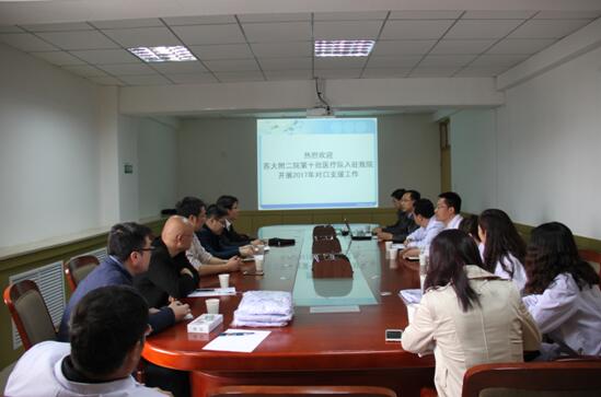 会上,我院院长马枭今对苏大附二院2013-2016年对口支援工作进行简要回顾,介绍了我院的基本情况,并要求各相关科室切实配合医疗队专家做好支援工作,努力学习支医专家先进的管理理念和医疗技术,进一步提升我院的整体实力。
