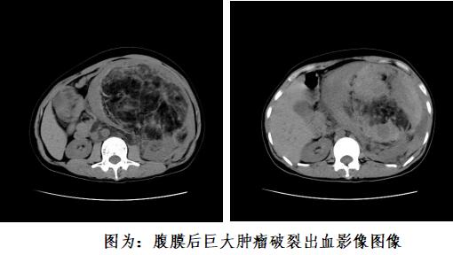 2022年9月22日,一位37岁女性患者,因“突发腹痛”12小时后来我院急诊科就诊,经初步检查,患者血压低、面色苍白、腹部膨胀,有失血休克表现。医务人员给患者进行了相关治疗后,进行了进一步检查。CT结果显示,发现腹腔巨大肿瘤、腔内出血、腹腔有积液。经普外科急会诊后,转入普外科住院治疗。