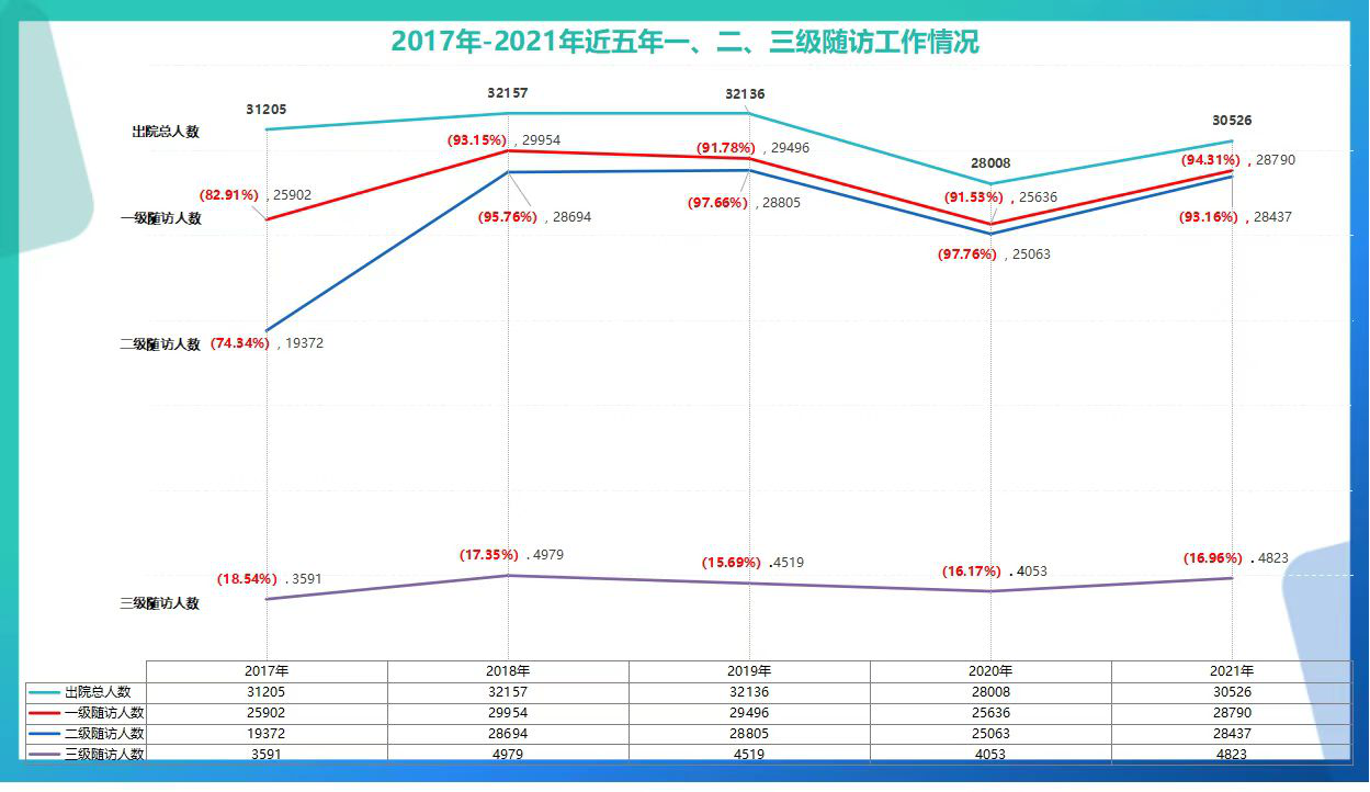 2016年7月,我院建立了出院病人三级随访制度,主动收集患者及陪人的意见和建议,随访方式包括电话随访、接受咨询、上门随诊等,了解病人出院后的治疗效果、病情变化和恢复情况,指导病人如何用药、如何康复、何时复诊,并对住院期间医护人员的服务态度、有无收受、索要“红包”等行风问题进行随访。制度运行至今,经过医院多次优化,目前运行效果良好,并将长期坚持实施。