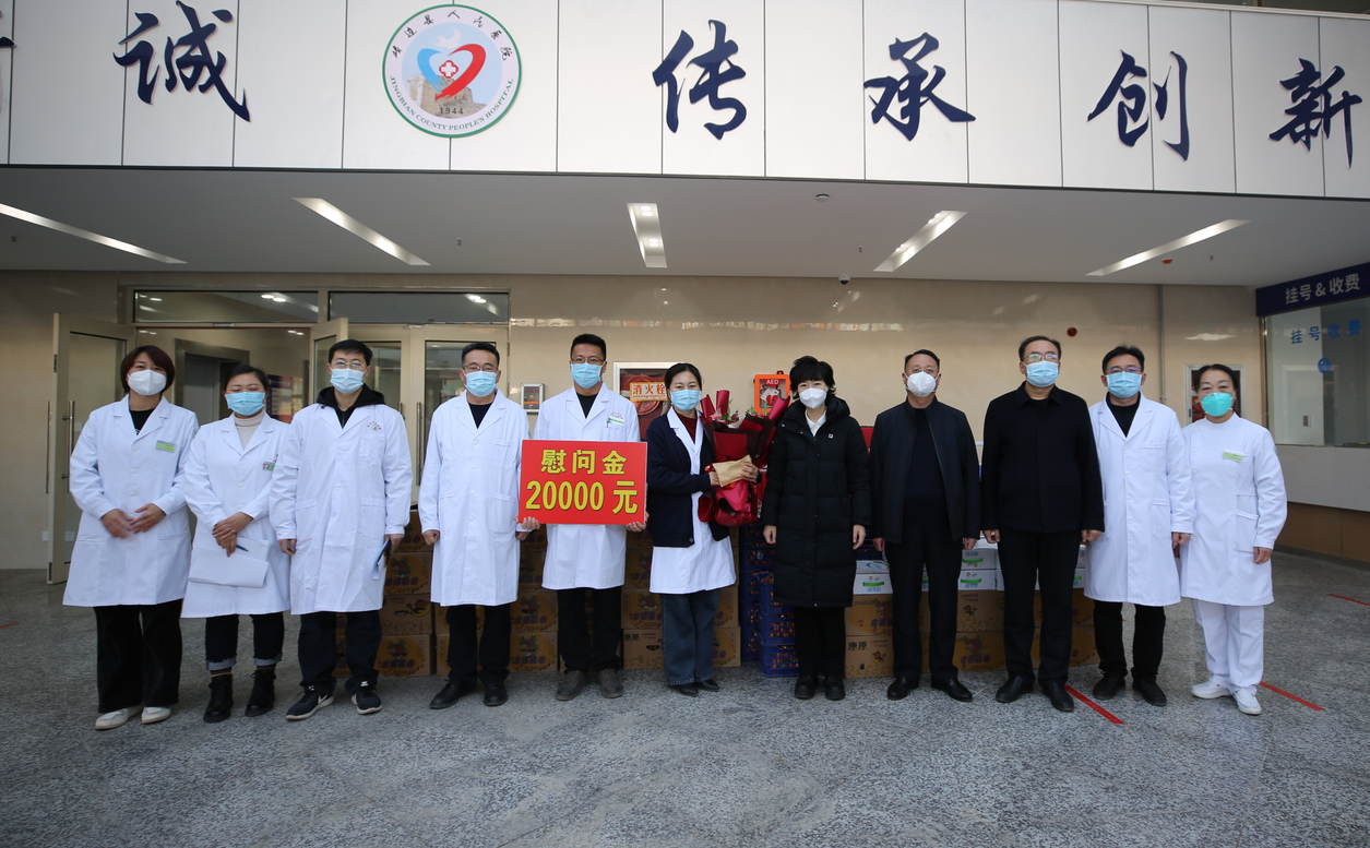 2023年1月20日,县委常委、宣传部长李京津一行莅临我院河东院区慰问医务人员。县卫健局局长薛向东,我院党委书记、院长马枭今,副院长王雄、袁海军,党委专职副书记郝世雄、河东院区执行院长张文艳及领导班子成员陪同慰问。