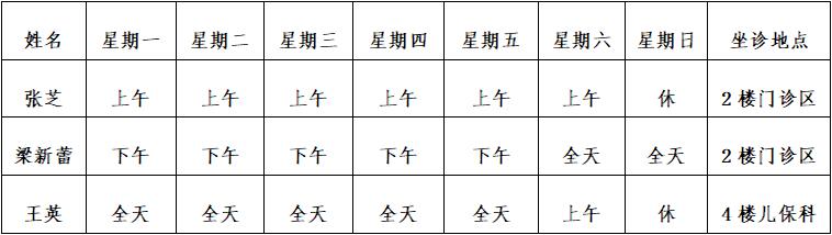2楼门诊区设有:专家门诊和普通门诊,实行“无节假日门诊”,5楼病区设有留观区和住院病区。该病区共有床位40余张,有普通病房和VIP病房。设施设备齐全,每天有专家坐诊,具体坐诊时间安排如下: