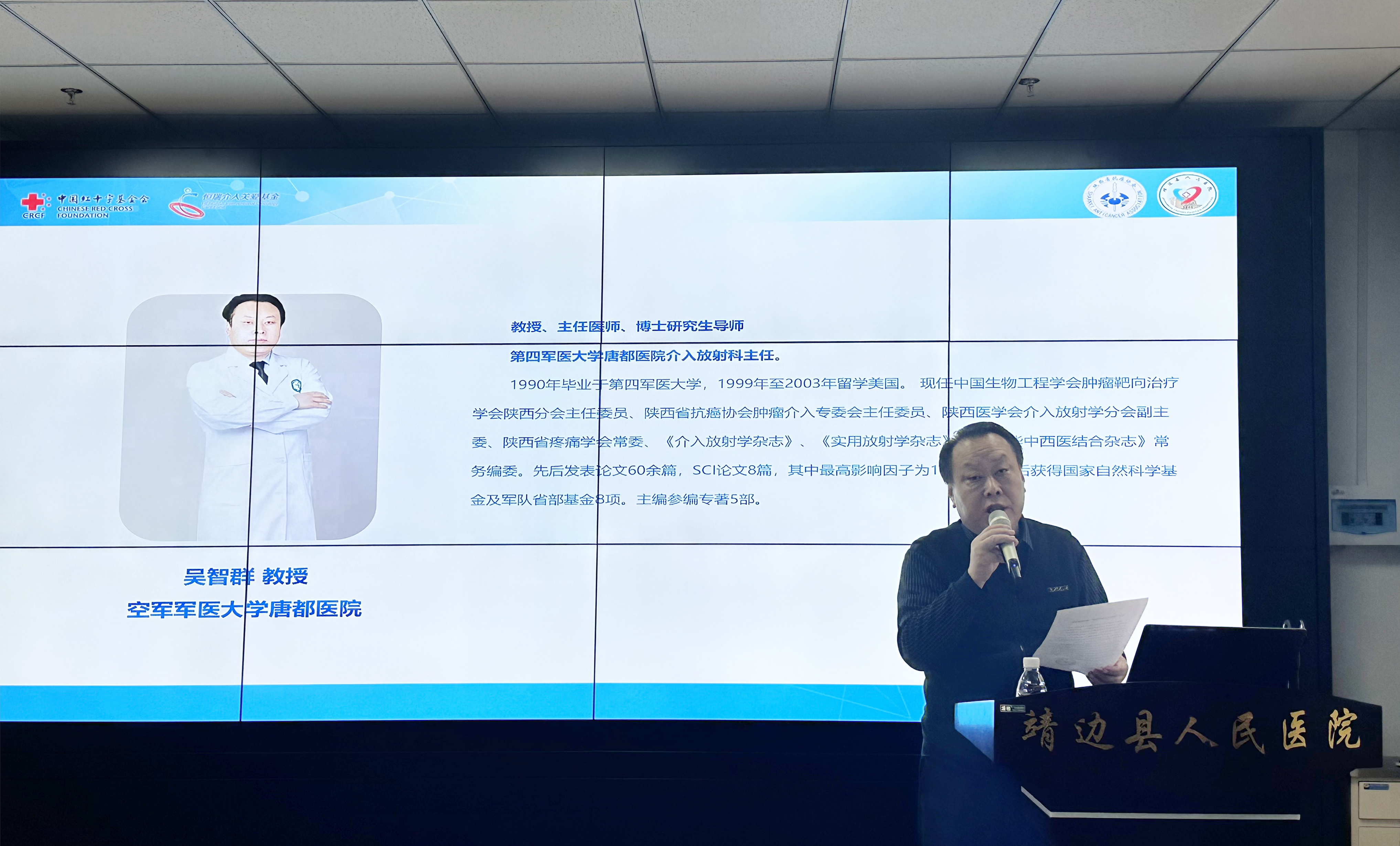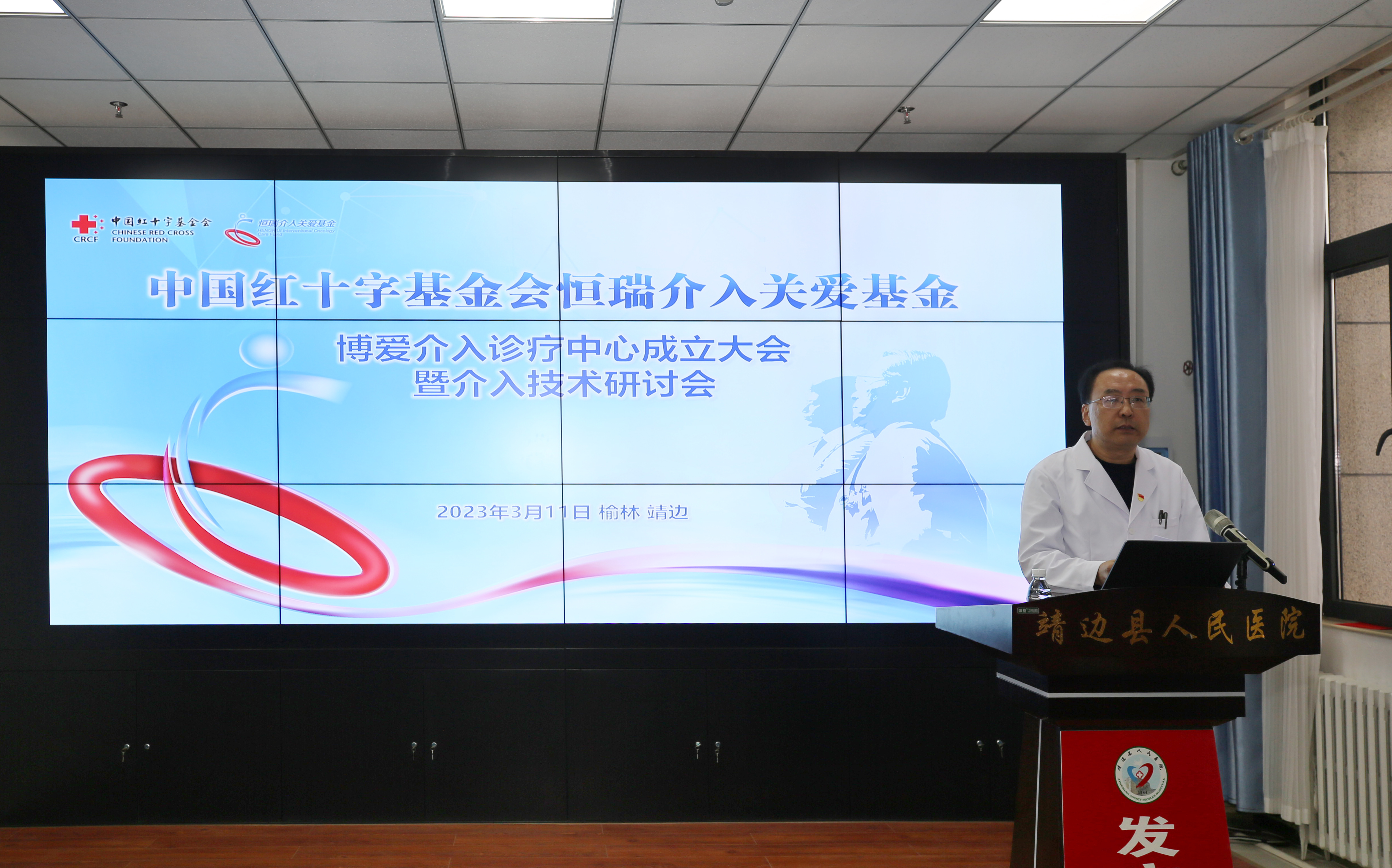 2023年3月11日,在我院举办中国红十字会基金会介入诊疗中心成立暨介入技术研讨会。本次会议特别邀请到了:西京医院放射科、介入手术中心主任孙立军,西安交通大学第一附属医院周围血管科主任刘亚民,第四军医大学唐都医院介入放射科主任吴智群,铜川市人民医院影像科、介入中心主任朱大卫。我院党委书记、院长马枭今,副院长王雄、袁海军及相关职能科室负责人,临床、医技科室医务人员等参加了会议。副院长袁海军主持会议。